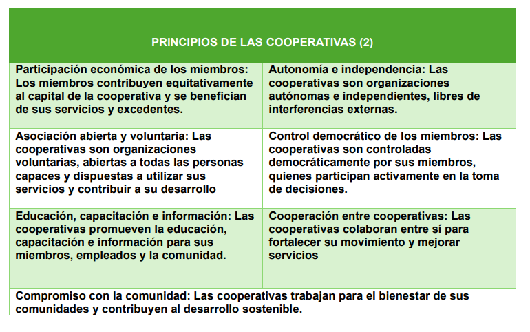 pertenecen a sus miembros, quienes las controlan y dirigen para dar respuesta a las necesidades y ambiciones de carácter económico, social y cultural comunes, compartiendo principios de equidad, igualdad y justicia social, establecidos desde la ACI para sus actuaciones.