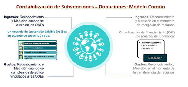 La imagen anexa ayuda a visualizar la aplicación del modelo común de reconocimiento de subvenciones y donaciones en el sector.